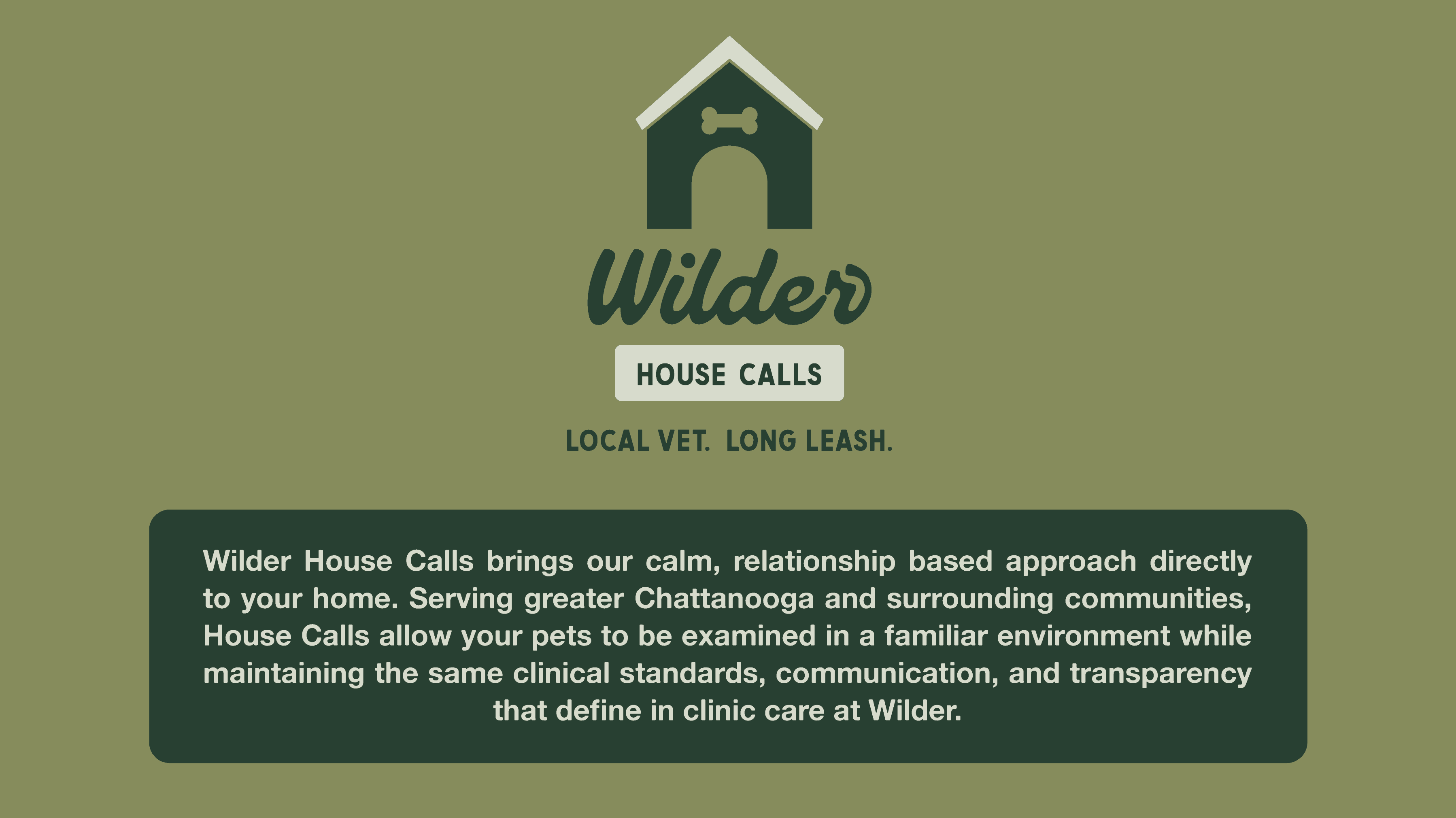 Wilder serves pets throughout the greater Chattanooga area, helping families avoid the stress of travel and waiting rooms.